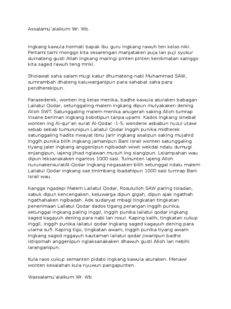 Puji syukur kepada Allah SWT pada hari ini kita diberikan rahmat dan karuania-Nya sehingga kita bisa berkumpul pada kesempatan yang baik ini dalam keadaan sehat wal afiat. Demikianlah beberapa contoh-contoh pidato tentang pendidikan karakter pendidikan moral dan pidato tentang perpisahan semoga bisa menjadikan acuan teman-teman dalam menyelesaikan tugas. Contoh Teks Pidato Bahasa Jawa terlengkap Tentang Pendidikan. Puji syukur kepada Allah SWT pada hari ini kita diberikan rahmat dan karuania-Nya sehingga kita bisa berkumpul pada kesempatan yang baik ini dalam keadaan sehat wal afiat. Para hadirin yang berbahagia.